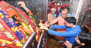 নববর্ষের প্রথম দিনে সপরিবারে কালীঘাট মন্দিরে অভিষেক