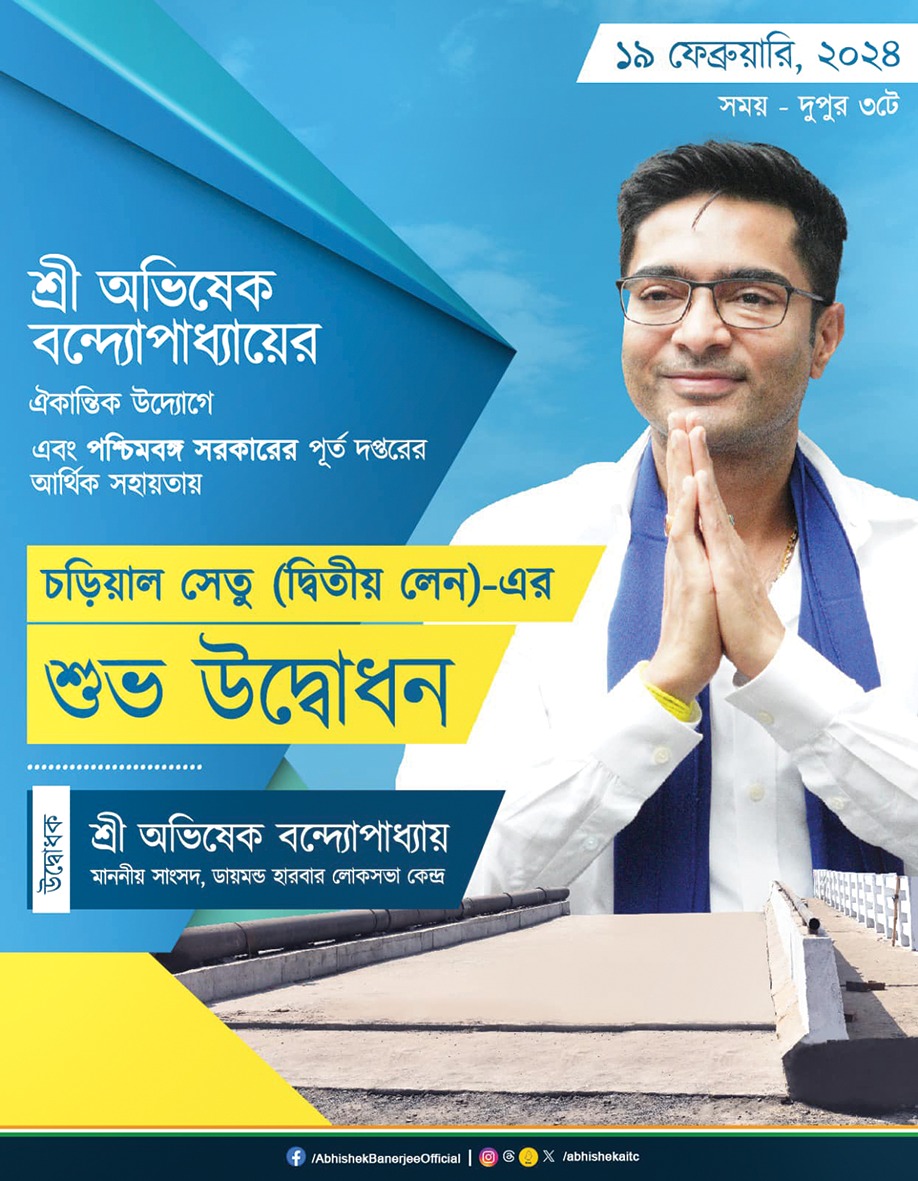 প্রতিবেদন : প্রতিশ্রুতি দিলে কীভাবে সেই কথা রাখতে হয় তার আদর্শ নিদর্শন অভিষেক বন্দ্যোপাধ্যায়। এবার ৫০ বছরের দাবি পূর্ণ করতে চলেছেন ডায়মন্ডহারবারের সাংসদ অভিষেক বন্দ্যোপাধ্যায়। চড়িয়ালের মানুষের দীর্ঘদিনের দাবি একটি সেতুর। দীর্ঘ ৩৪ বছরের বাম আমলে এই দাবি করেও লাভ হয়নি। কিন্তু অভিষেক বন্দ্যোপাধ্যায় এসেই জানিয়ে দেন, এই সেতু তিনি নির্মাণ করেই ছাড়বেন। সেই মতোই ১৯ ফেব্রুয়ারি সাংসদ উদ্বোধন করবেন এই সেতুর। এর ফলে চড়িয়াল থেকে আছিপুর, অন্যদিকে ফলতা থেকে আমতলা যাতায়াতে সুবিধা হবে। একইসঙ্গে বজবজ রেলস্টেশনে খুব দ্রুত পৌঁছানো যাবে। এই উন্নয়নে খুশি এলাকাবাসী। যানজটেরও অবসান হবে। ইতিমধ্যেই ৫৭৮০ কোটি টাকার উন্নয়নের কাজ করেছে তৃণমূল সরকার। এলাকায় আরও ১০ হাজার কোটি টাকার কাজ আগামী ১০ বছরে করবে বলে জানিয়ে দিয়েছেন অভিষেক বন্দ্যোপাধ্যায়।