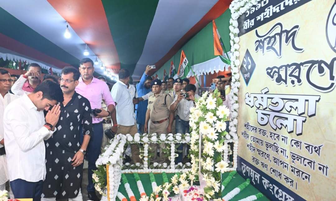 আজ গীতাঞ্জলি স্টেডিয়ামে গিয়ে প্রথমেই শহিদ বেদিতে মাল্যদান করে ১৩ জন শহিদকে শ্রদ্ধা জানান অভিষেক বন্দ্যোপাধ্যায়। এরপর কিছুক্ষণ তিনি গোটা স্টেডিয়ামে ব্যবস্থাপনা খতিয়ে দেখেন। কর্মী-সমর্থকদের সঙ্গে কথাবার্তা বলেন। খাওয়ার জায়গা থেকে মেডিক্যাল ক্যাম্প সমস্ত জায়গা ঘুরে দেখেন। প্রয়োজনীয় নির্দেশ দেন দায়িত্বে থাকা নেতাদের। এদিন অভিষেকের সঙ্গে ছিলেন মন্ত্রী ইন্দ্রনীল সেনও।