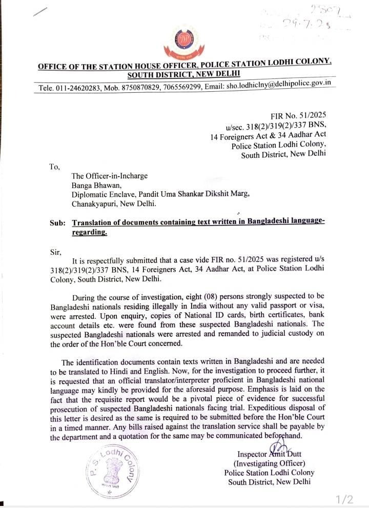 আবার দিল্লি বিজেপির পুলিশের নির্লজ্জ আচরণ, ছিঃ! বাংলা নাকি বাংলাদেশি ভাষা