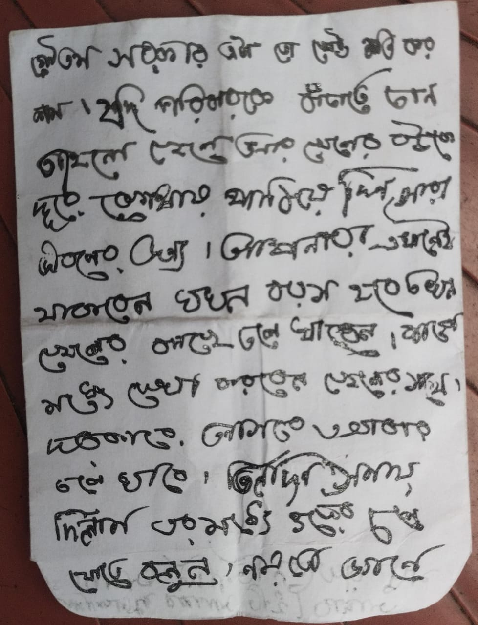 ঘটনাটি ঘটেছে ধূপগুড়ি মহকুমার মাগুরমারি ২ গ্রাম পঞ্চায়েতের দক্ষিণ আলতা গ্রামে। ৩ দিনের সময়সীমাও বেঁধে দিয়েছে চোরের দল। নয়তো মেরে ফেলার হুমকি দেওয়া হয়েছে সেই চিঠিতে বলে অভিযোগ। ভোট আপনারা জায়গা মতো দেননি তার শাস্তি এটাই, আমি পার্টির ছেলে, পরিষ্কার লেখা রয়েছে চিঠিতে! পরিবার সূত্র জানা যায়, সকলেই গভীর ঘুমে আচ্ছন্ন ছিলো সেই সুযোগে ঘরে ঢোকে চোর। তবে কিভাবে ঘরের মধ্যে চোর ঢুকলো ধন্দে পরিবার! কারণ ভেতর থেকে দরজা লাগিয়ে সকলে ঘুমিয়ে ছিলেন। প্রতিদিনের মতোই রাতের খাওয়া দাওয়া সেরে দরজা লাগিয়ে সকলেই ঘুমিয়ে পড়েন! সকাল হতেই নজরে আসে ঘরের আসবাব পত্র এলোমেলো এমনকি জামা কাপড় ছড়িয়ে ছিটিয়ে পরে রয়েছে। গোদরেজের লকার খোলা, প্রাথমিক ধারণা চাবি দিয়ে লকার থেকে সোনা নিয়ে চম্পট দেয় চোরের দল! পরিবারের অভিযোগ চোরের দল রেখে যায় একটি চিঠি যা নিয়েই আতঙ্কে রয়েছে পরিবারের সদস্যরা! পুরো ঘটনাটি জানিয়ে ইতিমধ্যেই পুলিশের কাছে অভিযোগ দায়ের করা হয়েছে। ঘটনার তদন্তে নেমেছে পুলিশ।