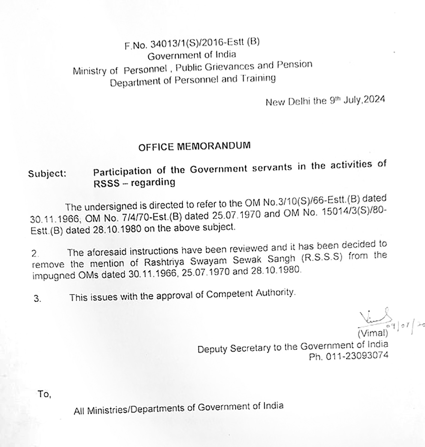 প্রতিবেদন : দেশের প্রশাসনের গেরুয়াকরণে এবার আনুষ্ঠানিকভাবে স্বীকৃতি দিল কেন্দ্রের মোদি সরকার। সরকারি কর্মচারীরা (Central Government Employee) এতদিন রাষ্ট্রীয় স্বয়ংসেবক সংঘ বা আরএসএসে যোগ দিতে পারতেন না। ৫৮ বছরের পুরনো সেই নিষেধাজ্ঞা এবার তুলে দিল বিজেপি সরকার। ফলে কেন্দ্রীয় সরকারি কর্মীদের (Central Government Employee) আর সংঘের সদস্যপদ নিতে বা পেতে অথবা সংঘের কাজে সক্রিয় ভাবে অংশ নিতে আর কোনও বাধা রইল না। কেন্দ্রের এই ঘোষণা সামনে আসতেই বিজেপি সরকারকে তীব্র আক্রমণ করেছে তৃণমূল কংগ্রেস। দলের রাজ্যসভার নেতা সাংসদ ডেরেক ও’ব্রায়েন এক্স হ্যান্ডেলে এই নিয়ে মোদি সরকারকে তোপ দেগেছেন। ডেরেক লিখেছেন, আমরা অত্যন্ত বিস্মিত। প্রায় ৬০ বছরের পুরনো এই নিষেধাজ্ঞা প্রত্যাহার করা হল। এই ঘটনায় আমরা গভীর ভাবে উদ্বিগ্নও। মোদি সরকার সংঘের ভাবধারা আরও বেশি করে ছড়িয়ে দিতে চাইছে। স্বাধীনতার আগে সংঘের কাজকর্মের ইতিহাস তুলে ধরে তিনি বলেন, এটা দেশের নিরাপত্তার পক্ষে একটি অত্যন্ত বিপজ্জনক পদক্ষেপ। তৃতীয়বার ক্ষমতায় আসা মোদি সরকারের এই সিদ্ধান্তে ফের ঝড় উঠতে চলেছে দেশ জুড়ে। তৃণমূলের পাশাপাশি অন্য বিরোধীরাও এই ইস্যুতে সরব হতে শুরু করেছে।