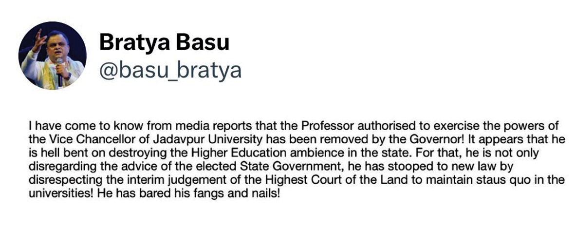 প্রতিবেদন : রাজ্যপালের তথা আচার্য সি ভি আনন্দ বোসের তুঘলকি সিদ্ধান্তে না করেছিলেন যাদবপুর বিশ্ববিদ্যালয়ের উপাচার্য বুদ্ধদেব সাউ। তাই আবার নিজের পুরনো খেলায় ফিরে গেলেন তিনি। সরিয়ে দিলেন উপাচার্য বুদ্ধদেব সাউকে। নিজের খামখেয়ালিপনার শিকার বানালেন নিজেরই নিয়োগ করা উপাচার্যকে। তাঁর কথা না মেনে যাদবপুর বিশ্ববিদ্যালয়ের সমাবর্তন অনুষ্ঠানে সম্মতি জানিয়েছিলেন তিনি। আর সেই রোষানলেই পড়তে হল তাঁকে। এই ঘটনায় ধিক্কার জানিয়েছেন রাজ্যের শিক্ষামন্ত্রী ব্রাত্য বসু। এর ফলে গোটা উচ্চশিক্ষা ব্যবস্থা নষ্ট হচ্ছে বলেই মত তাঁর। অপরদিকে এডুকেশন ফোরামের সদস্য তথা যাদবপুর বিশ্ববিদ্যালয়ের প্রাক্তন উপাচার্য ওম প্রকাশ মিশ্র এই ঘটনাকে অনৈতিক ও বেআইনি বলেই জানিয়েছেন।