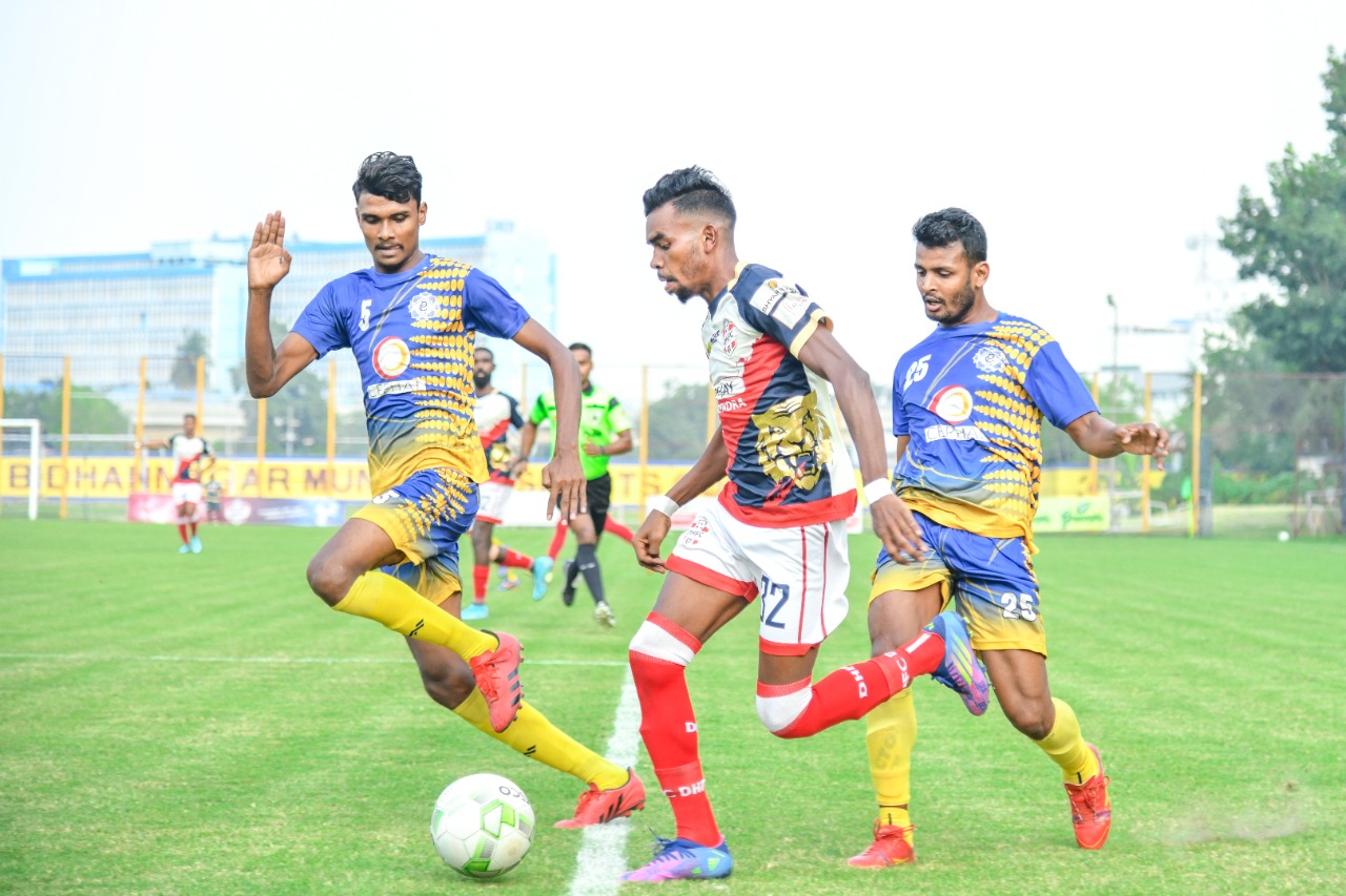বৃহস্পতিবার বিধাননগর পুরসভার স্পোর্টস কমপ্লেক্সের মাঠে দুই (DHFC vs Calcutta Police Club) দল মুখোমুখি হয়েছিল। গ্রুপ পর্বে শেষ ম্যাচ খেলার প্রায় একমাস পর ম্যাচ খেলল ডায়মন্ড হারবার। তবু সলমান, তুহিন, সুকুরাম সর্দারদের খেলায় তার প্রভাব পড়েনি। বরং শুরু থেকে ম্যাচের রাশ ছিল কিবুর ছেলেদের হাতে। খেলার শুরুতেই গোলের লকগেট প্রায় খুলে ফেলেছিল ডায়মন্ড হারবার। কিন্তু সুযোগ কাজে লাগাতে পারেননি সফিকরা। তবে প্রথমার্ধের ইনজুরি টাইমে এগিয়ে যায় ডায়মন্ড হারবার। গোল করেন শিহাদ।