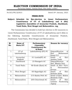 সংবাদদাতা, জঙ্গিপুর : মুর্শিদাবাদের সাগরদিঘি বিধানসভা কেন্দ্রের বিধায়ক সুব্রত সাহার মৃত্যুর পর ওই আসনে আগামী ২৭ ফেব্রুয়ারি অনুষ্ঠিত হতে চলেছে উপনির্বাচন। বুধবার এই ঘোষণা করেছে জাতীয় নির্বাচন কমিশন। গত ২৯ ডিসেম্বর হৃদরোগে আক্রান্ত হয়ে মৃত্যু হয় সুব্রত সাহার। নির্বাচন দফতর থেকে প্রাপ্ত তথ্য অনুযায়ী আগামী ২৭ ফেব্রুয়ারি সোমবার সাগরদিঘি বিধানসভা কেন্দ্রের ভোট এবং আগামী ২ মার্চ ওই কেন্দ্রের ভোট গণনা হবে।