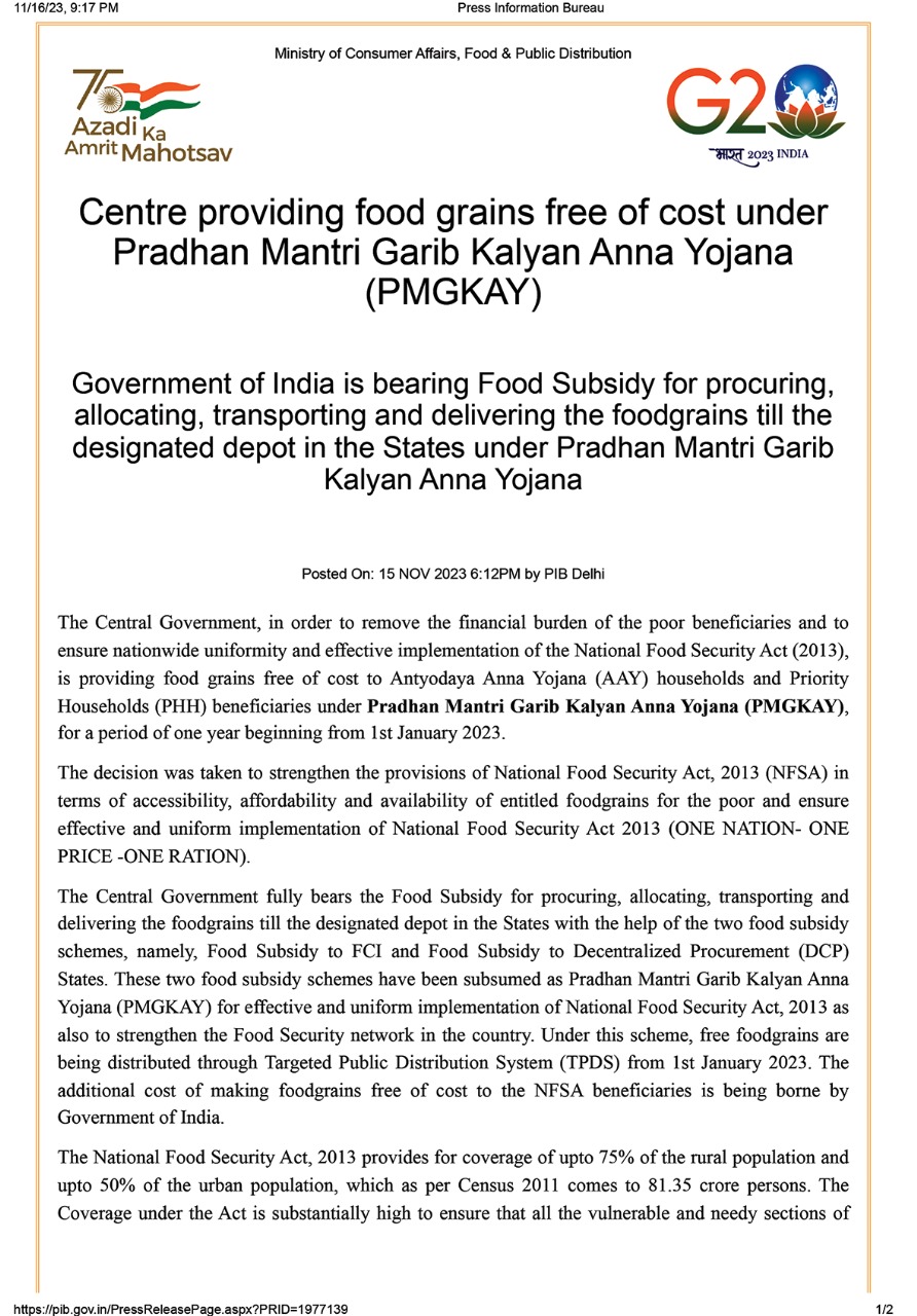 প্রতিবেদন : ভোট বাজারে মোদির ভাঁওতাবাজি ফাঁস করে দিল তাঁরই সরকার। ছত্তিশগড়ে ভোটপ্রচারে গিয়ে প্রধানমন্ত্রী ঘোষণা করেছিলেন, বিনামূল্যে রেশন (Free Ration) দেওয়ার মেয়াদ আরও পাঁচ বছর বাড়ানো হল। অথচ এই প্রকল্পের সরকারি নোটিফিকেশনে বেরোলে দেখা গেল আসলে ২০২৪-এর পয়লা জানুয়ারি থেকে বিনামূল্যে রেশন (Free Ration) প্রকল্প বন্ধ হয়ে যাচ্ছে। ভোট প্রচারে ভোট টানতে প্রধানমন্ত্রী যে মানুষকে বোকা বানানোর জন্য জেনে-বুঝেই মিথ্যে প্রতিশ্রুতি দিয়েছিলেন তা ফাঁস হয়ে গেল। গত ৯ বছরে প্রধানমন্ত্রী এরকম প্রচুর মিথ্যের ফানুস উড়িয়েছেন। তৃণমূল কংগ্রেসের অভিযোগ, ভোটমুখী রাজ্যগুলিতে ফায়দা তুলতে খোদ প্রধানমন্ত্রীও মিথ্যে বলতে কসুর করেননি। দলের প্রশ্ন, এই পরিস্থিতিতে সত্যি কথাটি কে বলছেন? প্রধানমন্ত্রী নাকি তাঁরই সরকারের দেওয়া নোটিফিকেশন? সব দেখেশুনে বোঝা যাচ্ছে ২০২৪-এর নির্বাচন জিতে আবার ক্ষমতায় ফিরতে কতটা মরিয়া বিজেপি এবং প্রধানমন্ত্রী নিজেও। তবে যেভাবে একটি সরকারি বিজ্ঞপ্তি মোদির ইমেজের-ব্র্যান্ডের তছনছ করে দিল। লোকসভা নির্বাচনের মাত্র কয়েক মাস আগে দাঁড়িয়ে দেশবাসীকে বিভ্রান্ত করার, মিথ্যা কথা বলার দায় থেকে নিজেকে মুক্ত করতে পারবেন না প্রধানমন্ত্রী।