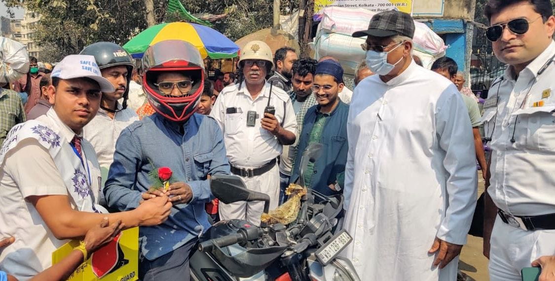 রাস্তায় যাতে ট্রাফিক সংক্রান্ত কোনও সমস্যা না হয় এবং মানুষ সচেতন থাকেন সেই কথা মাথায় রেখে পর্তুগিজ চার্চ, ক্যাথেড্রাল অফ মোস্ট হোলি রোজারির পাশে ব্রেবোর্ন রোডে একটি বিশাল রঙিন সড়ক নিরাপত্তা অভিযানের আয়োজন করেছিলেন হাওড়া ব্রিজ ট্রাফিক গার্ডের (Howrah Bridge Traffic Guard) ওসি সৌভিক চক্রবর্তী। তেরাপন্থী জৈন বিদ্যালয়ের পড়ুয়ারা পথচারীদের ট্রাফিক নিয়ম মেনে চলার পাশাপাশি আইন লঙ্ঘনকারীদের বুঝিয়ে দেন যাতে এইধরনের ভুলের যেন পুনরাবৃত্তি না হয়, সঙ্গে আবার গোলাপ এবং চকলেট বিতরণ করেন তাঁরা। মানুষের মধ্যে সচেতনতা বাড়ানর উদ্দেশ্যে লিফলেটও বিতরণ করা হয়। সৌভিক চক্রবর্তীর উদ্যোগে আয়োজিত এই অনুষ্ঠানে ওভারটেকিং,অপ্রয়োজনীয় হর্ন, মোবাইলের ব্যবহার, ভুল পার্কিং এবং অতিরিক্ত গতির ঝুঁকি রোধে বিশেষ জোর দেওয়া হয়। স্থানীয়রা ওসির এই পদক্ষপের ভূয়সী প্রশংসা করেন। এছাড়াও হাওড়া ব্রিজের ট্রাফিক গার্ড যেভাবে একাধিক সামাজিক কর্মকাণ্ডে অংশগ্রহণ করছে তাও সমাজের বিভিন্ন মহলে ব্যাপকভাবে প্রশংসিত হচ্ছে।