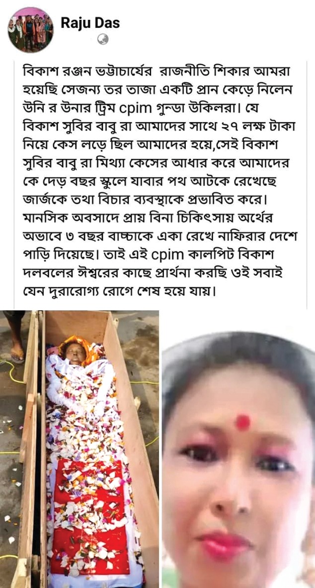প্রতিবেদন : কাদম্বিনী মরিয়া প্রমাণ করিয়াছিলেন তিনি আগে মরেন নাই। চাকরিপ্রার্থী এই মহিলাও মরিয়া প্রমাণ করিলেন, বিকাশরঞ্জন ভট্টাচার্যরা ২৭ লক্ষ টাকা নিয়ে কেস লড়েছিলেন। অসহায় চাকরিপ্রার্থীদের নিয়ে ন্যক্কারজনক রাজনীতি করেছিলেন। আর তিনি সেই নোংরা রাজনীতির শিকার। দীর্ঘদিন ধরে চাকরি না পাওয়ার যন্ত্রণা, মানসিক অবসাদে রোগাক্রান্ত হয়ে একপ্রকার বিনা চিকিৎসায় মৃত্যু হয় চাকরিপ্রার্থী প্রণী নার্জিনারির (Proni Narjinary)।