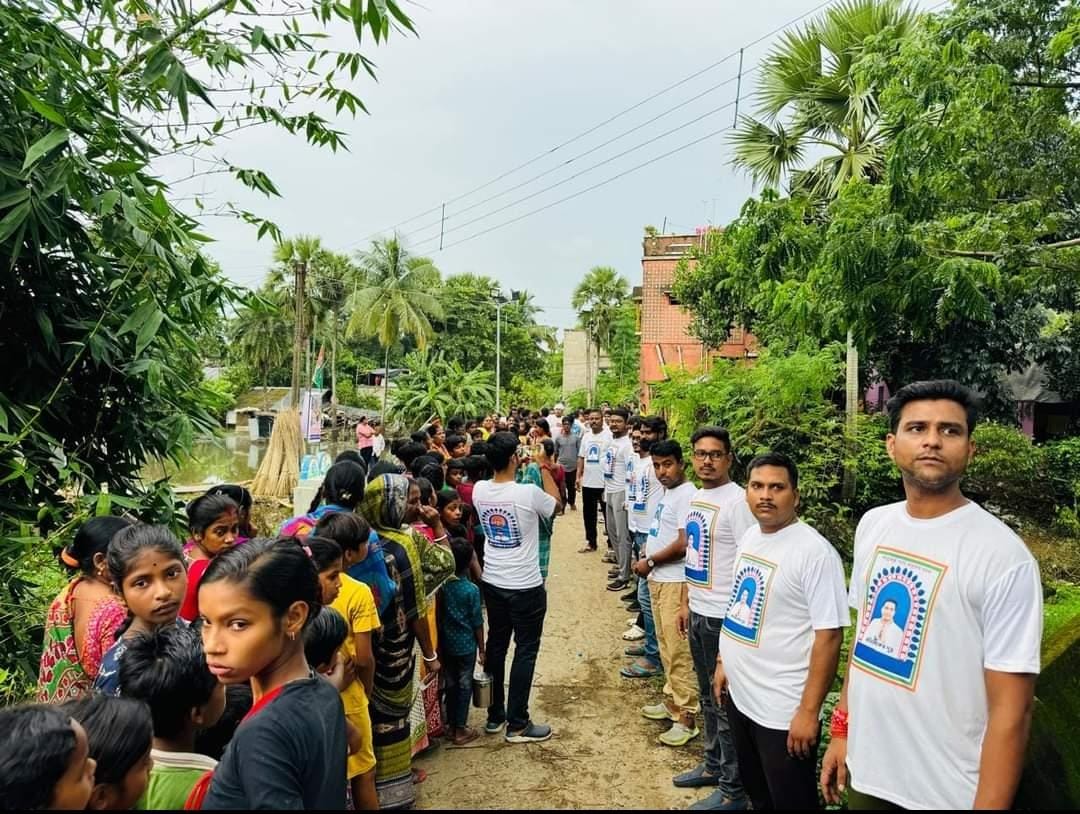 কৈলাস (Kailash Mishra) জানান, অভিষেকের দূত হিসেবে আমরা আমতার বানভাসি জয়পুর গ্রামে গিয়ে খিচুড়ি ও আলুরদম রান্না করে রাতে প্রায় দেড় হাজার মানুষকে বসিয়ে খাওয়াই। এছাড়াও প্রায় ৫০০টি পরিবারের হাতে শুকনো খাবার ও ত্রাণসামগ্রী তুলে দেওয়া হয়। ৫০০ জন কচিকাঁচাকে পুজোর উপহার হিসেবে আমরা নতুন জামাকাপড় দিয়েছি। বন্যা কবলিত মানুষের পাশে অভিষেকের দূত হিসেবে হাওড়া জেলার যুব তৃণমূলের কর্মীরা সবসময় পাশে আছি।’