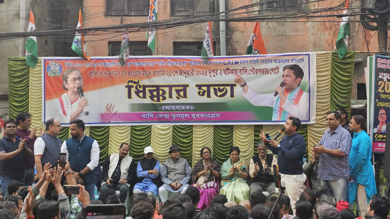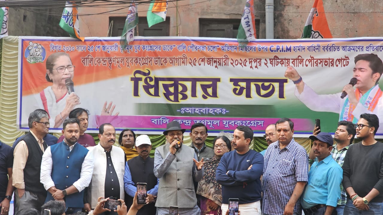 ২০১০ সালের ২৫ জানুয়ারি সিপিএম (CPIM) আশ্রিত দুস্কৃতিরা বালিতে যুব তৃণমূল কংগ্রেসের (TMC) ‘পুরসভা চলো’ অভিযানে হামলা চালিয়েছিল। সেই সময়ে তৃণমূল কংগ্রেসের একাধিক নেতা-কর্মী আক্রান্ত হয়েছিলেন। সিপিএমের সেই বর্বোরোচিত হামলার প্রতিবাদে আজ শনিবার বালি পুরভবনের সামনে ধিক্কার সভা করল যুব তৃণমূল কংগ্রেস।