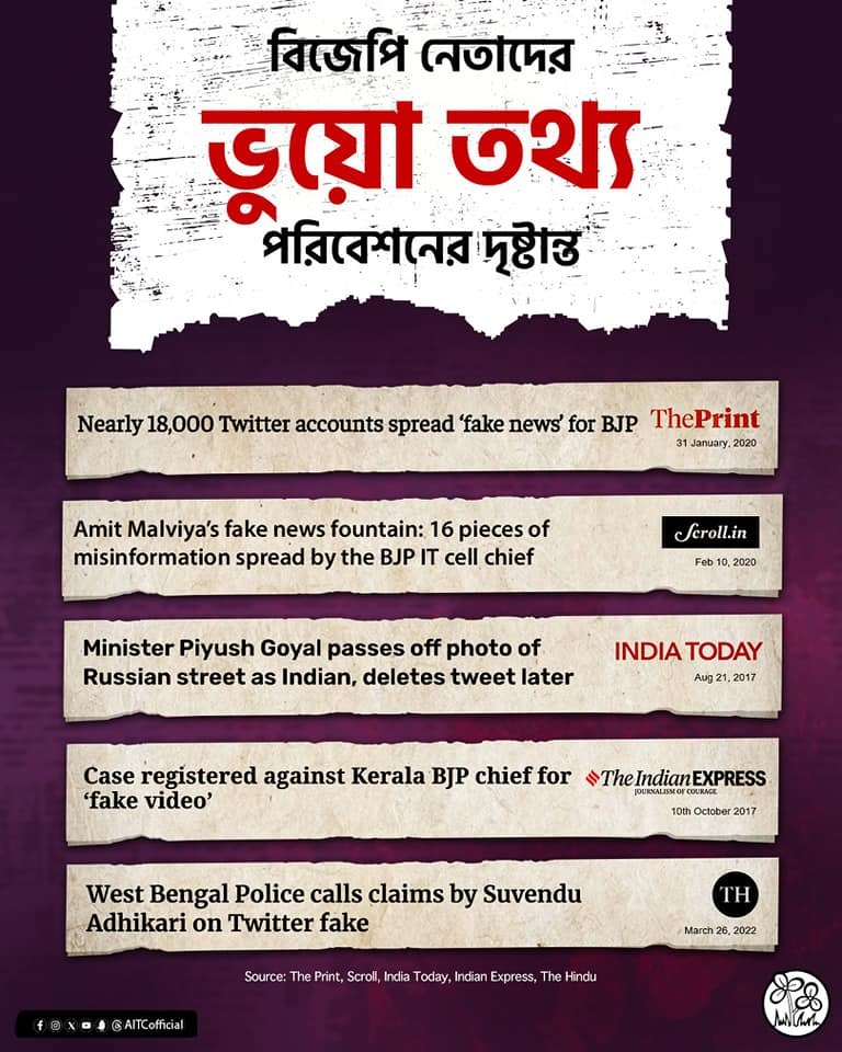 প্রতিবেদন : দেশের লজ্জা বিজেপি। তাদের শাসনকালে ভুয়ো তথ্য প্রচারে লজ্জার রেকর্ড গড়েছে ভারত। বিশ্বে ভারত এক নম্বর স্থান অধিকার করেছে মিথ্যে গুজব আর ভুয়ো তথ্যের প্রচারে। কেন্দ্রের নরেন্দ্র মোদি সরকার (Modi Government) দেশকে লজ্জা উপহার দিয়েছে বিগত ১০ বছরে। তার প্রমাণ তুলে ধরেছে ওয়ার্ল্ড ইকোনমিক ফোরাম ২০২৪ গ্লোবাল রিস্ক রিপোর্ট। তৃণমূল (TMC) সেই রিপোর্ট তুলে ধরে প্রধানমন্ত্রীর ভুয়ো প্রতিশ্রুতির তালিকা প্রকাশ করেছে। আর ধিক্কার জানিয়েছে কেন্দ্রের সরকারকে। তৃণমূলের আবেদন, এই মিথ্যের সরকারকে আসন্ন নির্বাচনে গণতান্ত্রিকভাবে বিদায় দিন।