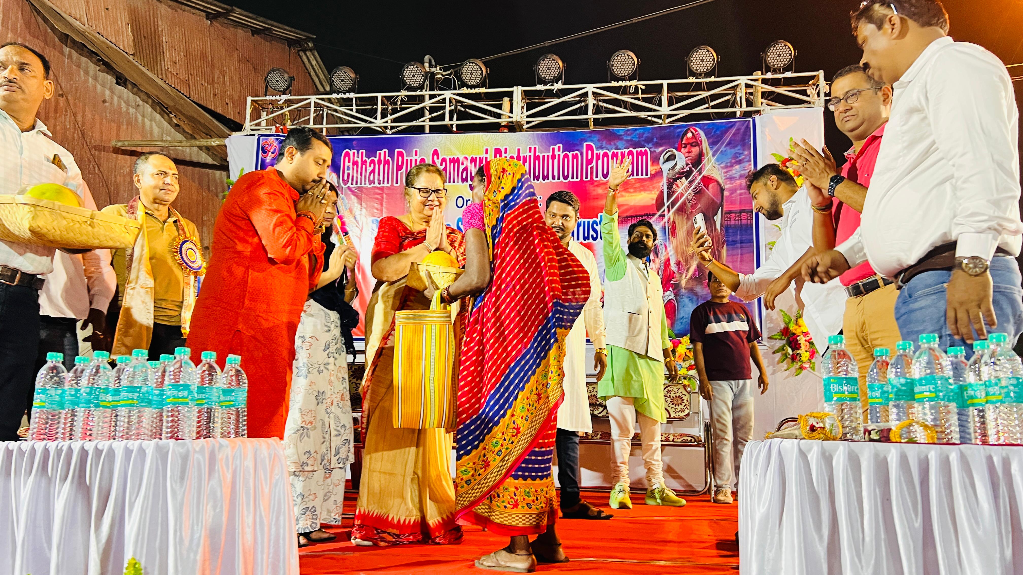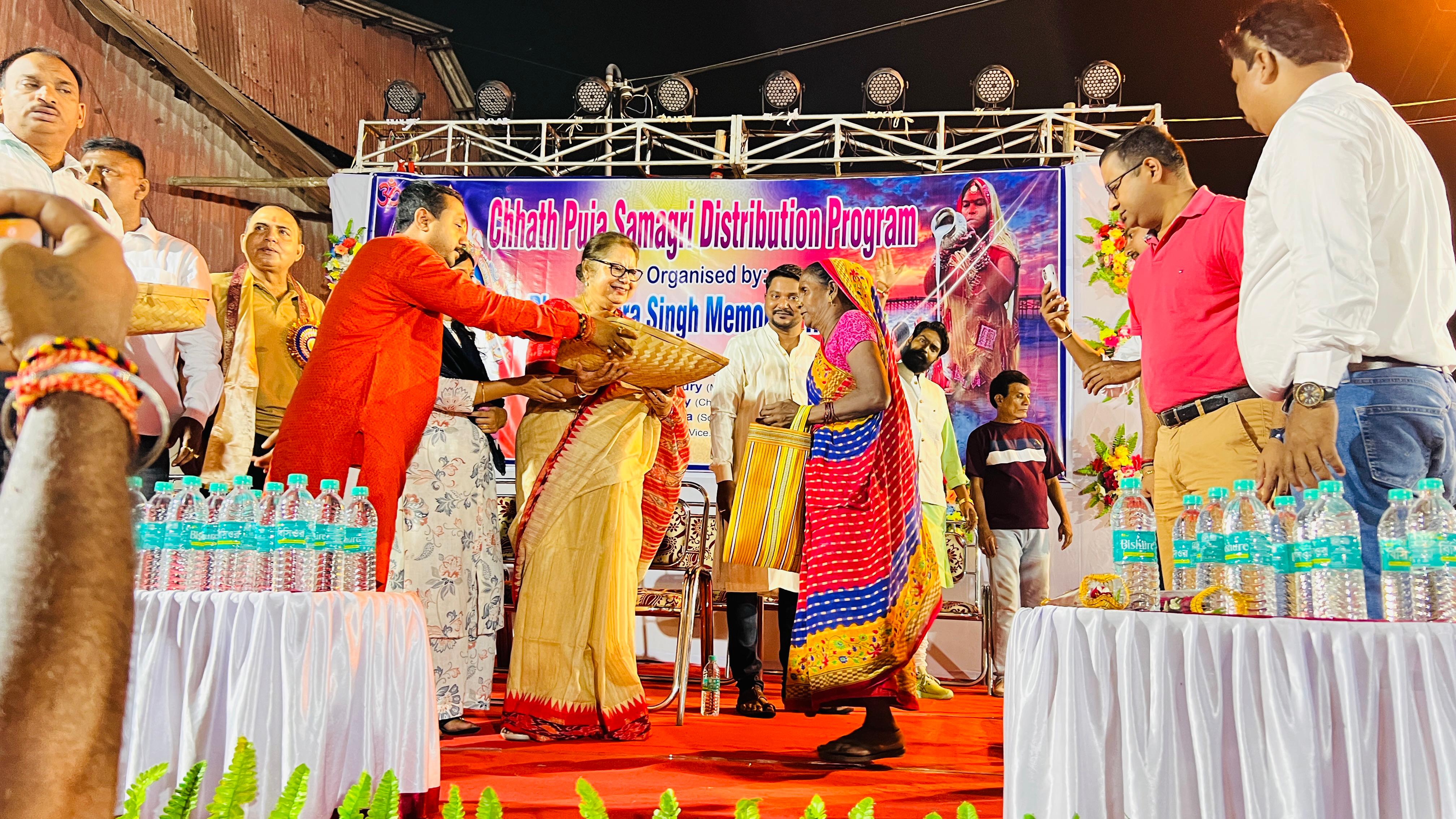 দক্ষিণ হাওড়া (South Howrah) বিধানসভা এলাকার প্রায় ১ হাজার পরিবারের হাতে ছটপুজোর বিভিন্ন সামগ্রী তুলে দেওয়া হল। রবিবার বিকেলে ধর্মেন্দ্র মেমোরিয়াল ট্রাস্টের উদ্যোগে শালিমার এলাকায় আয়োজিত ওই অনুষ্ঠানে উপস্থিত ছিলেন বিধায়ক ও হাওড়া সদর মহিলা তৃণমূল কংগ্রেসের সভানেত্রী নন্দিতা চৌধুরি, হাওড়া সদর যুব তৃণমূল কংগ্রেসের সভাপতি কৈলাশ মিশ্র, হাওড়া সদর যুব তৃণমূলের সহ-সভাপতি পূর্ণেণ্দু ঘোষ, ট্রাস্টের সভাপতি দেবানন্দ ঠাকুর সহ আরও অনেকে।