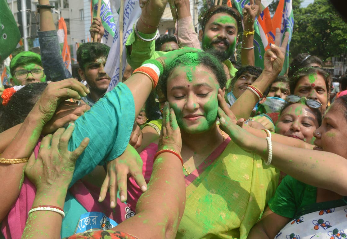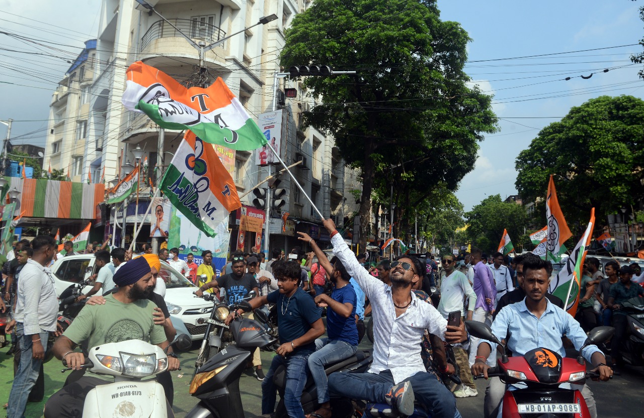 বেলা যত গড়াল ভিড় বাড়তেই লাগল। সঙ্গে জোড়া ফুলের দলীয় পতাকায় ঢেকে গেল ৩০বি, হরিশ চ্যাটার্জি স্ট্রিটের সামনের বড় রাস্তা। এক একটা রাউন্ড গণনার শেষে নেত্রীর ভোট বাড়ার খবর আসছে সঙ্গে সঙ্গেই দ্বিগুন উৎসাহে চলল সবুজ আবির খেলা আর নাচ।