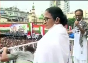 এদিকে কালীঘাটের বাড়ি থেকে তখন তৃণমূল নেত্রী মমতা বন্দ্যোপাধ্যায় রওনা দিয়ে ধর্মতলার সভা মঞ্চের দিকে। তখনও চারিদিক কার্যত কালো মেঘে ঢাকা। ভরা বর্ষায় ব্যাপক বৃষ্টি। তার মাঝেই এগিয়ে চলেছে নেত্রীর কনভয়।