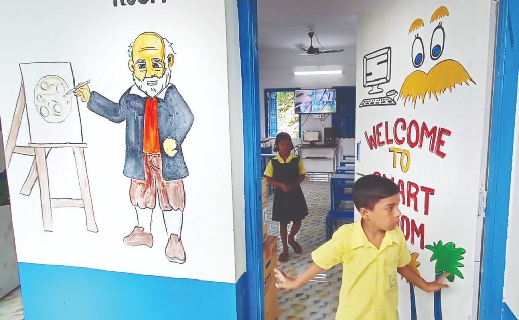 নীলাঞ্জন ভট্টাচার্য : শিক্ষাবিস্তারের আধুনিকতায় এখন পরস্পরকে টেক্কা দেওয়ার পালা। আর এই টেক্কা দেওয়ার খেলায় এখন পিছিয়ে নেই কলকাতা পুরসভার স্কুলও। ধাপার হাটগাছিয়ার ‘বিদ্যাসাগর প্রাথমিক বিদ্যালয়’ (Vidyasagar Primary School) তারই উজ্জ্বল প্রমাণ। কলকাতা পুরসভার আন্তরিক উদ্যোগে একদিন প্রায় হারিয়ে যেতে বসা এই প্রাথমিক বিদ্যালয়টির ‘স্মার্ট ক্লাস’ এখন প্রকৃত অর্থেই এক বিস্ময়। ব্ল্যাকবোর্ড বা চক-ডাস্টার নয়, দেওয়ালে এখন শোভা পাচ্ছে স্মার্ট এলইডি স্ক্রিন। স্কুলের সামনে সবুজের সমারোহ, সঙ্গে দোলনাও। রয়েছে মনের মতো খেলনাও। সবুজ শিশুমনের বিকাশে এর থেকে উপযোগী পরিবেশ আর কীই বা হতে পারে! এই মডেলই ধীরে ধীরে পুনরুজ্জীবনের পথ দেখাবে শহরের ঝিমিয়ে-পড়া পুরসভার স্কুলগুলিকে। ধাপে ধাপে এই স্কুলগুলিকে রূপান্তরিত করা হবে ইংলিশ মিডিয়ামে। লাখো টাকা খরচ করে আর বাচ্চাদের নিয়ে দৌড়তে হবে না নামীদামি কনভেন্ট স্কুলে। কিংবা অর্থের অভাবে আর অপূর্ণ থাকবে না অভিভাবকদের স্বপ্ন।