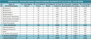 এদিন সকাল থেকে ডায়মন্ড হারবারে শুরু হয় কোভিড পরীক্ষা। বিভিন্ন এলাকায় চলছে করোনা টেস্ট।