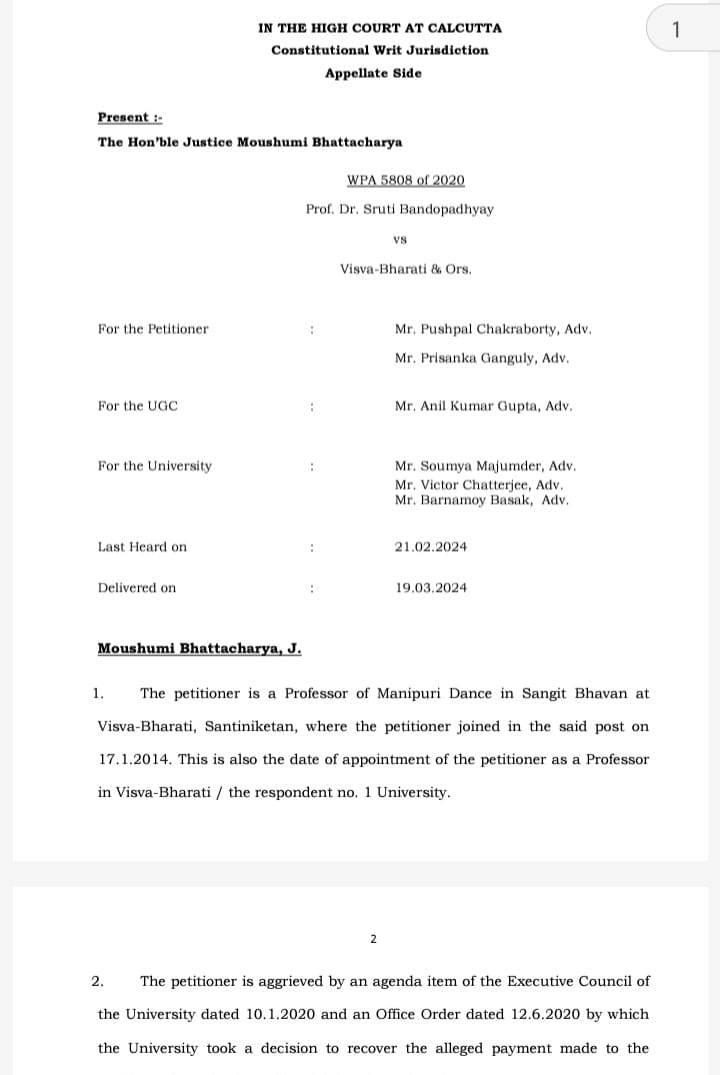 সংবাদদাতা, শান্তিনিকেতন : বিশ্বভারতীর(Visva Bharati) প্রাক্তন উপাচার্য বিদ্যুৎ চক্রবর্তী অবসর নেওয়ার পরও তাঁর বহু কুকীর্তি ও খামখেয়ালি নির্দেশের বিষয় আদালতে সমালোচিত হয়ে চলেছে। ফলে বিতর্ক থেকে দূরে থাকা হয়ে উঠছে না বিশ্বভারতীর (Visva Bharati) প্রাক্তন স্বেচ্ছাচারী এই উপাচার্যের। এবার তাঁর নেতৃত্বে বিশ্বভারতীর কর্মসমিতির স্বেচ্ছাচারী নির্দেশ বাতিল করে দিল আদালত। ২০২০ সালে মণিপুরি নৃত্যের অধ্যাপিকা শ্রুতি বন্দ্যোপাধ্যায়ের চাকরিতে যোগদানের সময় থেকে পাওয়া চারটি অগ্রিম ইনক্রিমেন্ট ছ’বছর অধ্যাপনা করার পর কোনও কারণ না জানিয়ে বন্ধ করে দেয় বিদ্যুতাধীন বিশ্বভারতী। বর্ধিত বেতনের অর্থ বর্তমান বেতন থেকে কেটে নেওয়ার সিদ্ধান্ত নেয় কর্মসমিতি। শ্রুতি দেবী কর্মসচিব-সহ অন্য আধিকারিকদের কাছে বিস্তারিত জানতে চাওয়া-সহ সিদ্ধান্ত পুনর্বিবেচনার আবেদন করে উত্তর না পেয়ে কলকাতা হাইকোর্টে মামলা দায়ের করেন। প্রাক্তন উপাচার্য় বিদ্যুৎ চক্রবর্তীর অন্যায়ভাবে বেতন বন্ধ ও বিশ্ববিদ্যালয়ে ঢুকতে না দেওয়া-সহ সব নির্দেশ আগেই ইতিপূর্বে উচ্চ আদালত বাতিল করে। উল্লেখ্য, শ্রুতি দেবী রবীন্দ্রভারতীতে নৃত্যের প্রফেসর পদে কর্মরত ছিলেন। বিশ্বভারতীতে প্রফেসর পদে যোগদানের সময় তাঁর আবেদনের ভিত্তিতেই ২০১৪ সালে বিশ্বভারতীর কর্মসমিতি অগ্রিম ইনক্রিমেন্ট মঞ্জুর করে। মঙ্গলবার বিচারক মৌসুমী ভট্টাচার্য অগ্রিম ইনক্রিমেন্ট বহাল রাখার রায় শোনানোর পরই বিশ্ববিদ্যালয়ের উকিল রায়ের উপর স্থগিতাদেশ চেয়ে আবেদন করলে সেই আবেদন নাকচ হয়ে যায়। অন্যায়ভাবে কেটে নেওয়া টাকা বিশ্বভারতীকে ফেরতের নির্দেশে দেন বিচারক।