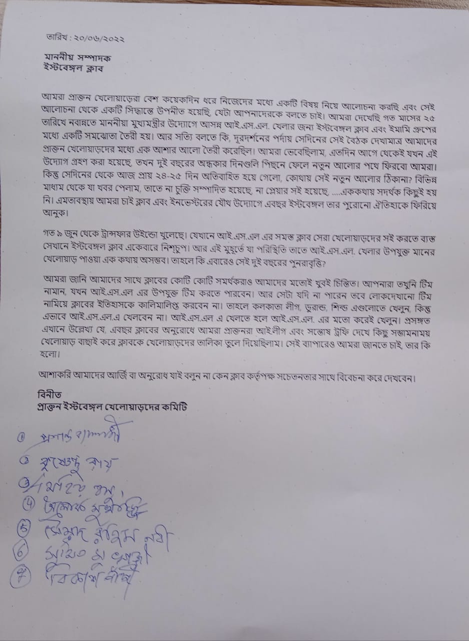 প্রতিবেদন : ফিফা ট্রান্সফার উইন্ডো খুলে গিয়েছে ৯ জুন থেকে। আইএসএলের অন্য দলগুলো যখন একের পর এক ফুটবলার সই করাতে ব্যস্ত তখন ইস্টবেঙ্গল ক্লাব (East Bengal Club) এখনও নতুন লগ্নিকারীর সঙ্গে চুক্তি চূড়ান্ত করে উঠতে পারেনি। মুখ্যমন্ত্রী মমতা বন্দ্যোপাধ্যায় ক্লাবের নতুন লগ্নিকারী হিসেবে ইমামি গ্রুপের নাম ঘোষণার পর তিন সপ্তাহ কেটে গেলেও এখনও চুক্তির শর্ত, অংশীদারিত্ব নিয়ে দুই পক্ষ সমঝোতায় আসতে পারেনি। শোনা যাচ্ছে, এই সপ্তাহেই চুক্তিপত্রের খসড়া ক্লাবে পাঠিয়ে দেবে ইমামি গ্রুপ। এ সব দেখে বিরক্ত ক্লাবের প্রাক্তন ফুটবলাররা চিঠি পাঠালেন ইস্টবেঙ্গল সচিব কল্যাণ মজুমদারকে।