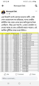 গোটা বিষয়টি ফেসবুকে প্রকাশ্যে এনে তদন্তের দাবি তোলেন বনগাঁ সাংগঠনিক জেলার বিজেপির প্রাক্তন সভাপতি মনস্পতি দেব। ফলে তুমুল অস্বস্তিতে গেরুয়া শিবির। দায় এড়াতে মুখে কুলুপ দলের নেতাদের। রবিবার ওই পোস্টে মনস্পতি দেব ৪১ জনের নামের তালিকা দিয়ে দাবি করেন, টাকা বরাদ্দ হওয়ার পরেও আক্রান্তরা ক্ষতিপূরণ পাননি। পোস্টে তিনি লেখেন, ‘দলের কেন্দ্রীয় কমিটির পক্ষ থেকে এদের জন্য ক্ষতিপূরণের টাকা এসেছিল, কিন্ত এরা পায়নি। এখানে মোবাইল নম্বর দেওয়া আছে যে কেউ ভেরিফাই করতে পারেন। এই আর্থিক দুর্নীতির তদন্ত হওয়া উচিত।’ এ প্রসঙ্গে মনস্পতি দেব বলেন, ‘‘আমি সেই সময় জেলা সভাপতি ছিলাম। তাই সবাই আমাকে বলছে৷ রাজ্য বলছে টাকা অ্যাকাউন্টে পাঠানো হয়েছে। তাহলে টাকা কোথায় গেল, তার তদন্ত হওয়া দরকার।’’
