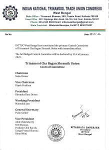 তৈরি হল তৃণমূল কংগ্রেসের চা বাগান শ্রমিক ইউনিয়নের প্রাথমিক কেন্দ্রীয় কমিটি। এতদিন যা ছিল না। দলের শ্রমিক সংগঠনের সভাপতি ঋতব্রত বন্দ্যোপাধ্যায় এর উদ্যোগে হল এই অসাধ্য সাধন। এই কেন্দ্রীয় কমিটির চেয়ারম্যান হয়েছেন নকুল সরান। ভাইস চেয়ারম্যান হয়েছেন দীপক প্রধান৷ সভাপতি করা হয়েছে বীরেন্দ্র বরা ওঁরাওকে। এরাজ্যের চা বাগান ইউনিয়নের ইতিহাসে এই প্রথম কোনো জনজাতি গোষ্ঠী থেকে সভাপতি হলেন। কার্যকরী সভাপতি হয়েছেন মান্নালাল জৈন। সাধারণ সম্পাদক পুলিন গোলদার।