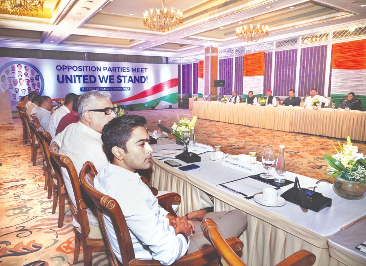 প্রতিবেদন : গণতন্ত্র রক্ষা করতে একজোট (opposition alliance 2024) হয়ে লড়াইয়ের ডাক দিলেন তৃণমূল সুপ্রিমো মমতা বন্দ্যোপাধ্যায়। তাঁকে জোরালো সমর্থন করলেন সোনিয়া গান্ধী-সহ জোটের বাকি নেতারা। মঙ্গলবার মূল বিরোধী জোটের বৈঠকের ১৬ ঘণ্টা আগে ঘরোয়াভাবে মিলিত হলেন ২৬টি বিরোধী দলের শীর্ষ নেতৃত্ব। নেত্রী মমতা বন্দ্যোপাধ্যায় ছাড়াও উপস্থিত ছিলেন তৃণমূল কংগ্রেসের সর্বভারতীয় সাধারণ সম্পাদক অভিষেক বন্দ্যোপাধ্যায় ও ডেরেক ও’ব্রায়েন। তবে তৃণমূল নেত্রীই ছিলেন মধ্যমণি। পাটনার মতো বেঙ্গালুরুতেও মমতা বন্দ্যোপাধ্যায়কে কেন্দ্র করেই আবর্তিত হচ্ছে জোট-বৈঠক। এই ঘরোয়া বৈঠকে সিদ্ধান্ত হয়েছে বিজেপি সরকারের জনবিরোধী ও স্বৈরাচারী পদক্ষেপের বিরুদ্ধে একযোগে সোচ্চার হবে বিরোধীরা। কীভাবে, কোন পথে তা করা হবে তার জন্য তৈরি হবে অভিন্ন ন্যূনতম কর্মসূচি। এদিন প্রত্যেকটি দলই প্রাথমিকভাবে তাদের ভিন্ন ভিন্ন ইস্যুতে কর্মসূচির খসড়া তুলে ধরেছে। আজ, মঙ্গলবারের বৈঠকে সেই খসড়া একসঙ্গে করে কীভাবে তা যৌথ কর্মসূচিতে রূপান্তরিত করা যায় তা নিয়ে আলোচনা হবে। বিজেপিকে সাফ করতে বিরোধী দলগুলির শক্তি অনুযায়ী ‘একের বিরুদ্ধে একের লড়াইয়ের ফর্মুলা’ তৃণমূলনেত্রী মমতা বন্দ্যোপাধ্যায় প্রথম থেকেই বলে আসছেন। এদিন এই ফর্মুলা নিয়েও প্রাথমিক কথাবার্তা হয়েছে। বিস্তারিত আলোচনা হবে আজ। চলতি বছরেই পাঁচ রাজ্যে বিধানসভা নির্বাচন। রাজস্থান, মধ্যপ্রদেশ, ছত্তিশগড়, তেলেঙ্গানা ও মিজোরাম— ভোটমুখী এই পাঁচ রাজ্যের জন্য আলাদা নির্বাচনী কৌশল তৈরির কথাও উঠে এসেছে সোমবারের ঘরোয়া আলোচনায়। ঠিক হয়েছে আজ, মঙ্গলবার মূল বৈঠকে ২৬টি বিরোধী দল মিলে এই জোটের একটি জুতসই নাম ঠিক করা হবে। সোমবার বেঙ্গালুরু পৌঁছনোর পর সন্ধে ৬টায় বিরোধীদের ঘরোয়া আলোচনা শুরু হয়। নৈশভোজের আবহে এই আলোচনা মঙ্গলবারের মূল বৈঠকের সময় সূত্রধরের কাজ করবে। গত ২৩ জুন পাটনায় বিরোধী জোটের প্রথম বৈঠকে বিজেপি-বিরোধিতার ক্ষেত্রে সবকিছুকে পাশে সরিয়ে রেখে একসঙ্গে পথ চলার অঙ্গীকার ছিল। সোমবারের ঘরোয়া বৈঠকের আলোচনা ও জমজমাট ছবি স্পষ্ট ইঙ্গিত দিচ্ছে পাটনার অঙ্গীকার বেঙ্গালুরুতে শপথে পরিণত হতে চলেছে। নেত্রী মমতা বন্দ্যোপাধ্যায়ের ব্যক্তিগত উদ্যোগে আপ নেতৃত্বও এই বৈঠকে যোগ দিয়েছেন। সোমবার ঘরোয়া বৈঠক ও নৈশভোজ শেষে এদিনের আলোচনা নিয়ে কেউই খুব একটা মুখ খোলেননি। নিশ্চিতভাবে আজ মঙ্গলবার মেগা বৈঠকের (opposition alliance 2024) পর পাটনার মতোই যৌথ সাংবাদিক সম্মেলনে জোটের অভিমুখের কথা বলবেন। অবিজেপি শাসিত রাজ্যগুলিতে এজেন্সি রাজনীতি, রাজ্যপালের ভূমিকা, কেন্দ্রের বঞ্চনা-সহ একগুচ্ছ সমস্যা নিয়ে প্রতিবাদে সরব হবে বিরোধী জোট। এদিন লোকসভা নির্