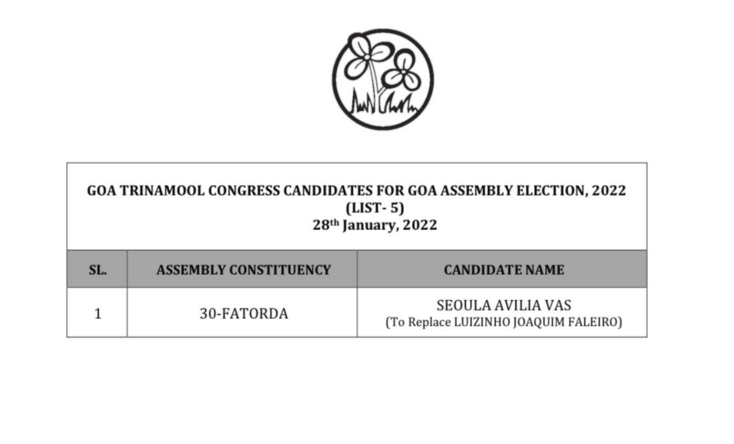গোয়ার (Goa) ফাতোরদা আসনে প্রার্থী পরিবর্তন হল তৃণমূল কংগ্রেসে (Trinamool Congress)। দলের সর্বভারতীয় সহ সভাপতি ও সাংসদ বর্ষীয়ান লুইজিনহ ফালেরিওকে (Luizinho Faleiro) এই আসনে প্রার্থী করেছিল দল। শুক্রবার সকালে তৃণমূল কংগ্রেসের তরফে আনুষ্ঠানিকভাবে জানানো হল ফাতোরদা আসন থেকে ফালেরিও বদলে প্রার্থী হলেন তরুন তুর্কী আইনজীবী সিওলাভিলা ভাস (Seoula Avilia Vas)।