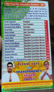 কলকাতা হাইকোর্ট বার অ্যাসোসিয়েশনের নির্বাচন আগামী ২২ থেকে ২৬ নভেম্বর। আজ, বৃহস্পতিবার প্যানেলের জন্য ১৫ প্রার্থী জন আইনজীবীর তালিকা প্রকাশ করল তৃণমূল কংগ্রেস লিগ্যাল সেল।
